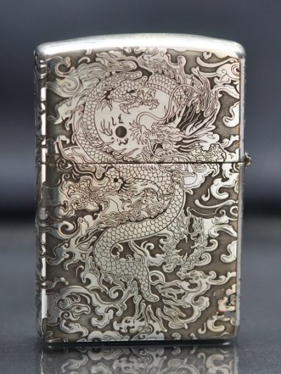 • Bật lửa Zippo khắc hình rồng mây 2 mặt