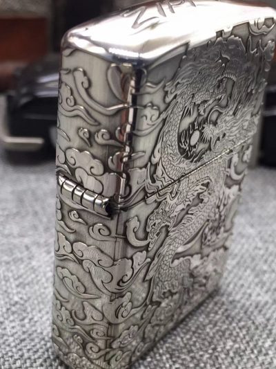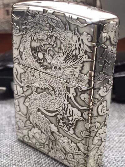 Khác với những chiếc zippo bình thường với chất liệu bằng Đồng, , chiếc bật lửa Zippo USA Bạc khối Rồng vờn mây có lớp vỏ ngoài làm hoàn toàn bằng chất liệu Bạc nguyên khối có mộc đáy lồi với nét khắc sâu và sắc nét. Vì chất là chất liệu cao cấp nên những chiếc Zippo dòng Bạc Khối luôn mang cho mình màu sắc bạc cao cấp và Cùng với đó là bản lề 5 chấu đem lại sự chắc chắn, kín khít giúp giữ xăng tốt từ 4-10 ngày cho 1 lần châm xăng.