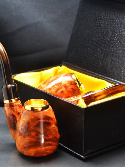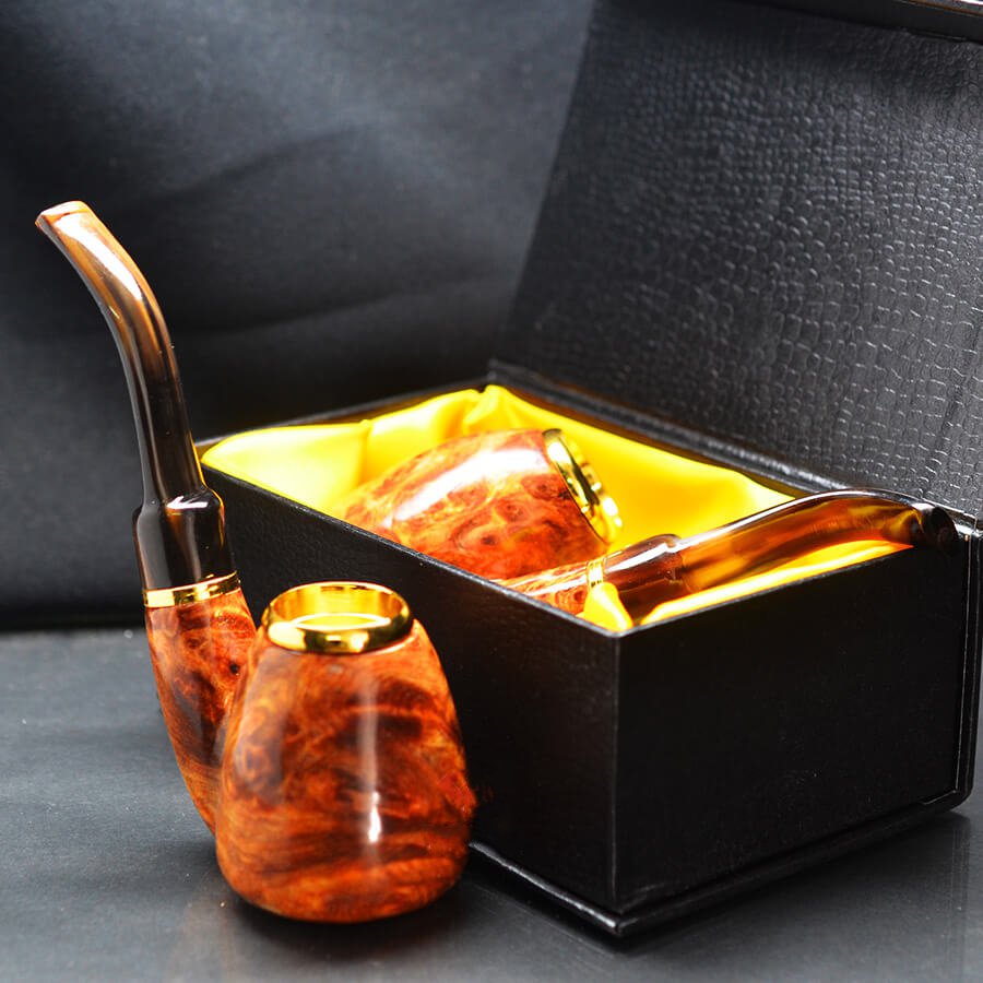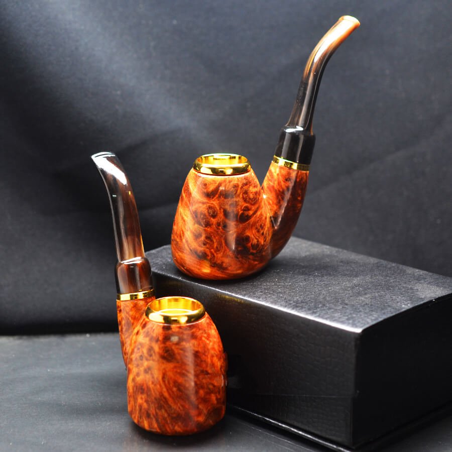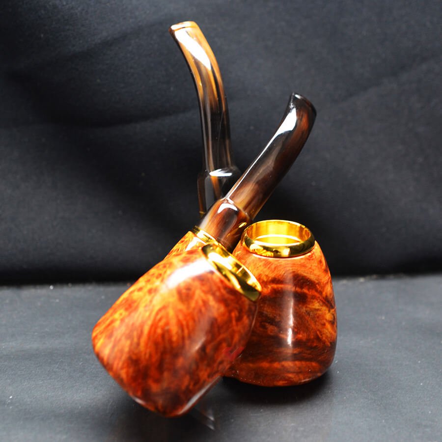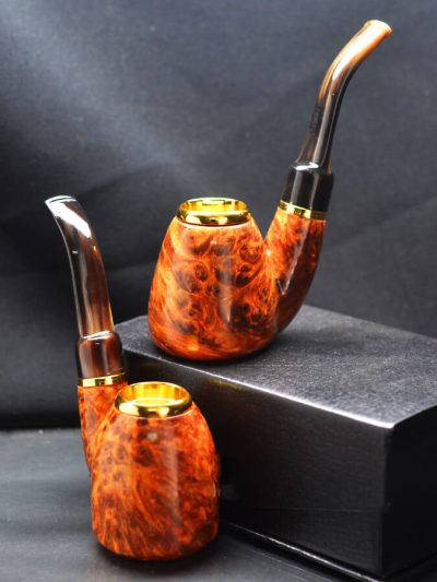 Tẩu Hút Cigar Gỗ Nu Hoa Huyết Long Cán Sừng Đế Đứng Freesize TS17-2: