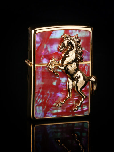 Bật lửa Zippo chính hãng ngựa mạ vàng khảm trai đỏ