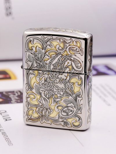 Zippo Chrome Armor kỳ lân ngậm tiền