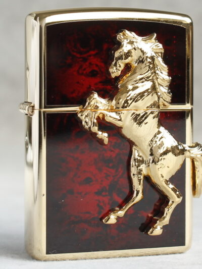 Bật lửa Zippo ngựa mạ vàng tráng men đỏ