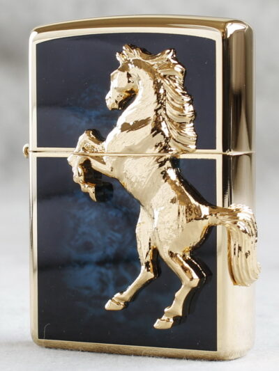 Bật lửa Zippo ngựa mạ vàng tráng men xanh