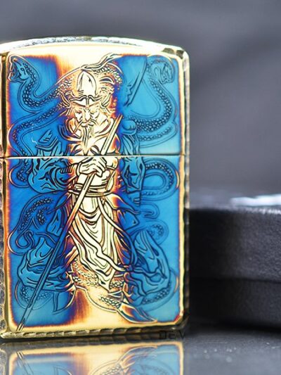 Zippo hoa văn cổ ốp Lam Ngọc 2 mặt ZN315