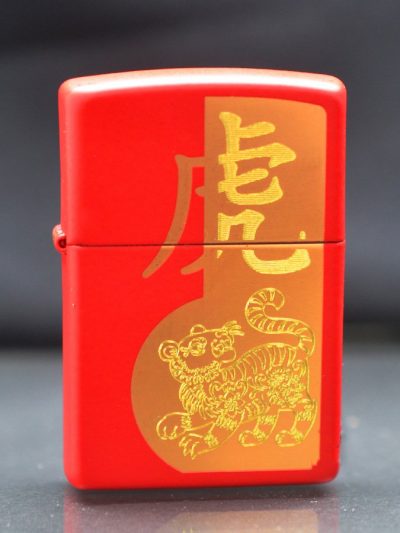 Zippo Sơn Đỏ Khắc Hình Hổ Nhâm Dần 2022 Z12
