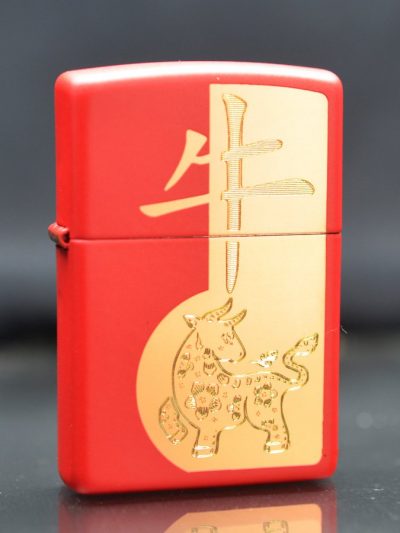 Zippo Mỹ chính hãng Sơn Đỏ Khắc Hình Chú Trâu 2021 Z392