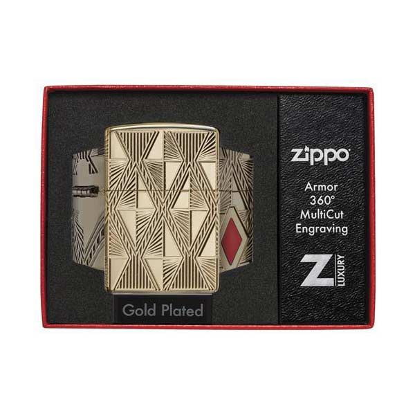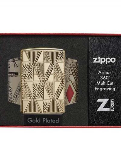 Zippo 29671 – Zippo Armor Luxury Diamond Design High Polish Gold Plate là dòng Zippo cao cấp Armor vỏ dày mạ vàng Gold Plate, lớp vỏ dày hơn 1.5 lần các dòng tiêu chuẩn, cảm giác cầm nặng tay và chắc chắn hơn.