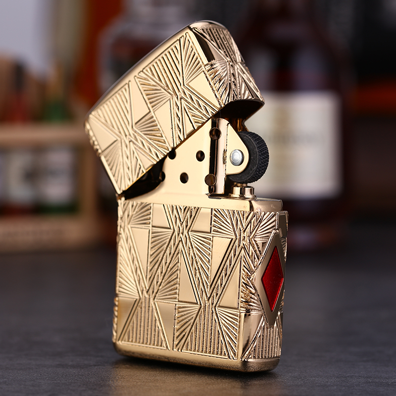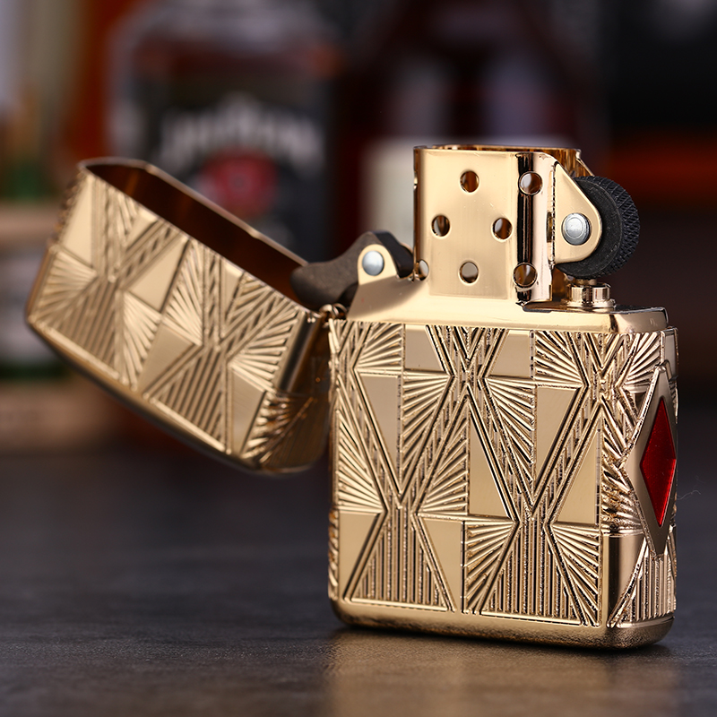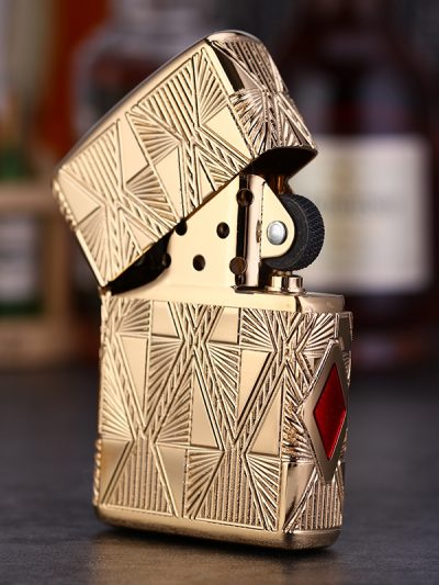 Viên đá hình thoi màu đỏ nổi bật trên chiếc bật lửa mạ vàng càng tăng sức hấp dẫn khó có thể chối từ.