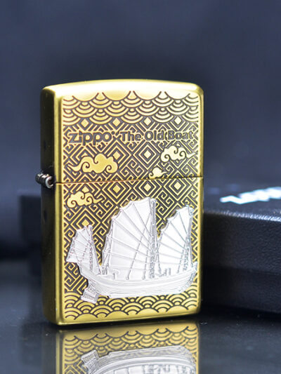 Zippo hoa văn chìm ốp Emblem Thuyền Buồm Cổ ZN312