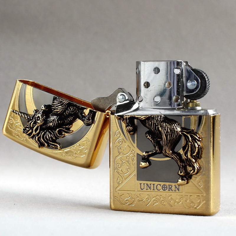 • Bật lửa Zippo ốp nổi ngựa unicorn hoa văn cực đẹp