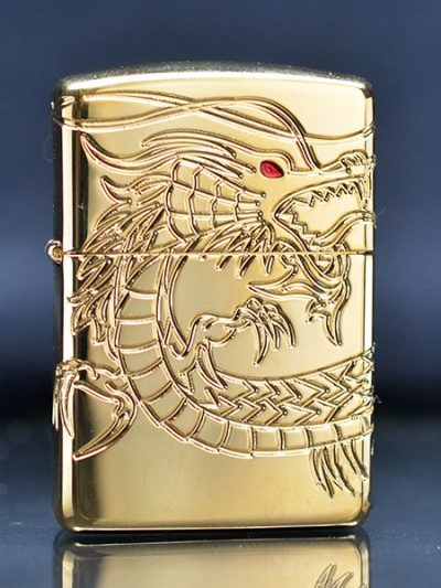 Zippo Armor khắc chìm rồng vàng mắt đỏ Red Eye Dragon Gold Plate Z144