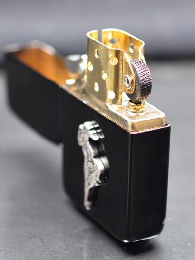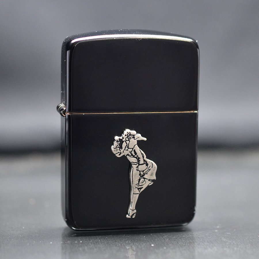 Zippo Tái Bản 1941 Đen Bóng Ốp Emblem Cô Gái Windproof ZN350