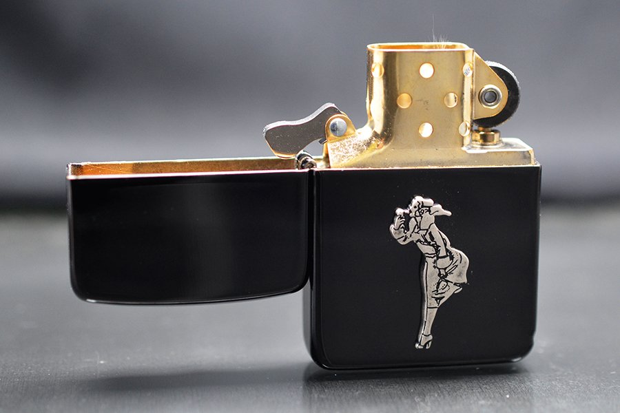 • Bật lửa Zippo Tái Bản 1941 Đen Bóng Ốp Emblem Cô Gái Windproof